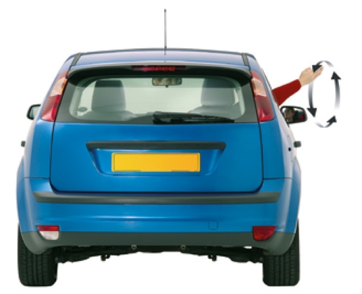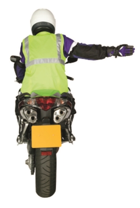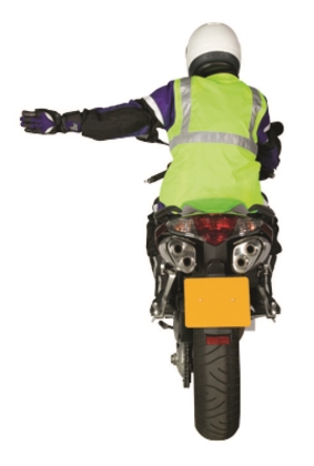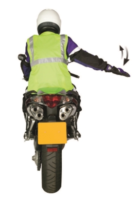 For use when direction indicator signals are not used, or when necessary to reinforce direction indicator signals and stop lights. Also for use by pedal cyclists and those in charge of horses.